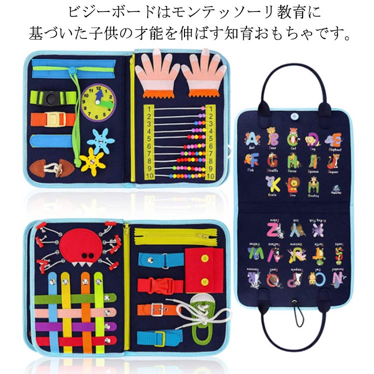 モンテッソーリ おもちゃ 男の子 女の子 1/2/3/4/5歳 ビジーボード 知育玩具 動かす 紐通し 靴紐結び ボタン ジッパー 指先 数字 アルファベット 幼児 学習 教育 入園準備 誕生日