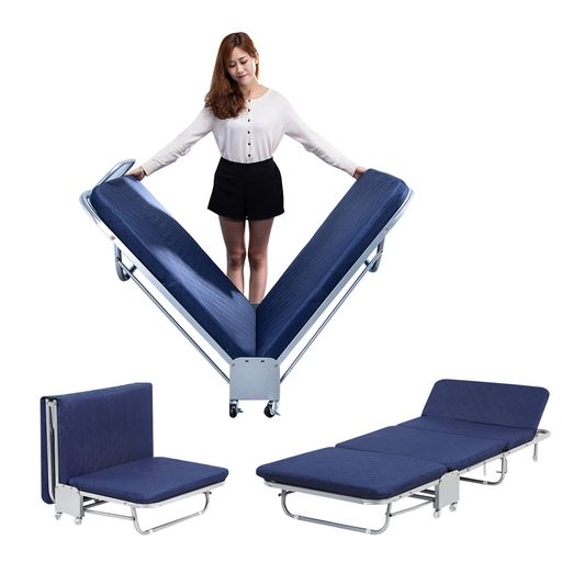 折りたたみベッドシングルベッドリクライニング5段階高反発マットレス組立不要キャスター付き簡易ベッドコンパクトソファベッドマットレス付き三つ折りネイビー色幅65CM...