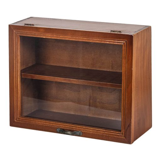 木製コレクションケース卓上小型W30xD11xH22cmフナチュラル木目ィギュアディスプレイケース棚横長アンティークガラスアクリルキミニ収納ャビネット透明コレクショ2段棚板タイプ...