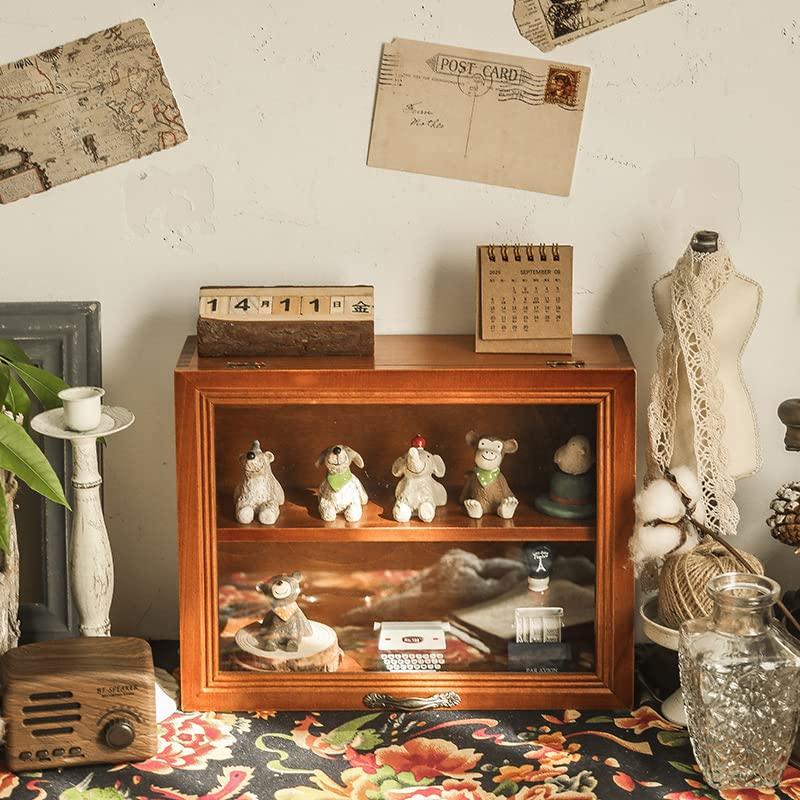 木製 コレクションケース 卓上 小型 フナチュラル木目 ィギュア ディスプレイケース 棚 横長 アンティーク ガラス アクリルキ ミニ 収納