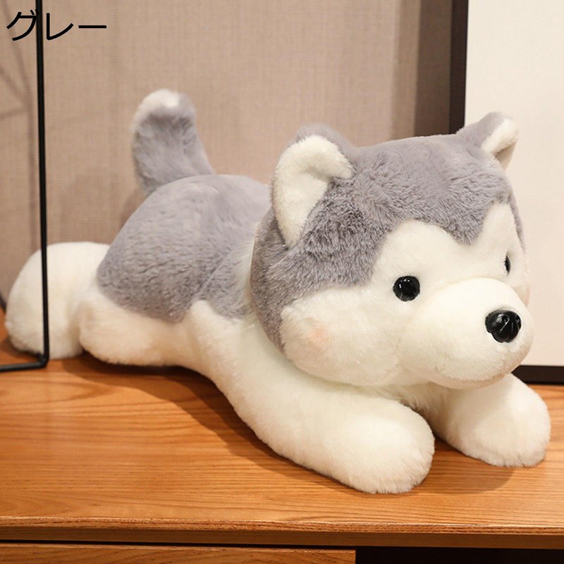 ハスキー 犬縫いぐるみ 縫い包み 抱き枕 クッション うつ伏せ姿 いぬ ロング 体長い ワンチャン おもちゃ 可愛い 萌え萌え 添い寝枕 ベッド インテリア 高反発 記念日 お祝い プレゼント