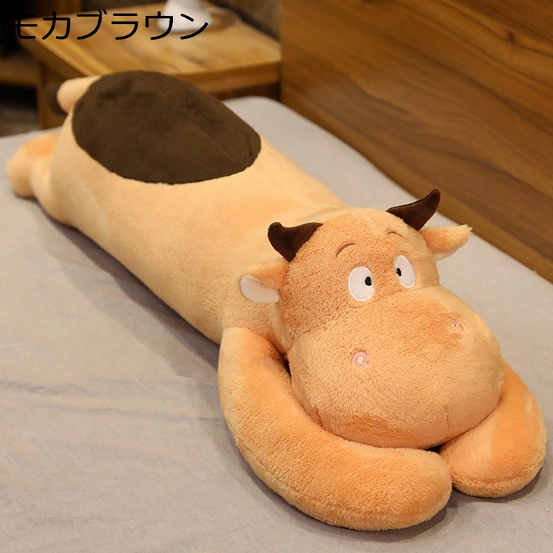 ウシぬいぐるみ 抱きまくら 特大 可愛い 縫いぐるみ 萌え ロングクッション 長い おもしろ 巨大/大きい ふわふわぬいぐるみ 柔らかい 洗える もふもふ 女の子 男の子 子供 プレゼント ギフト ねむねむ インテリア