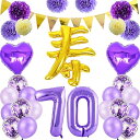 古希祝い 誕生日 バルーン 寿 70歳 風船セット 飾り付け ガーランド バースデー 飾り 大きい数字 ペーパーフラワー 紙花 紙吹雪風船 長寿祝い パーティー プレゼント 紫