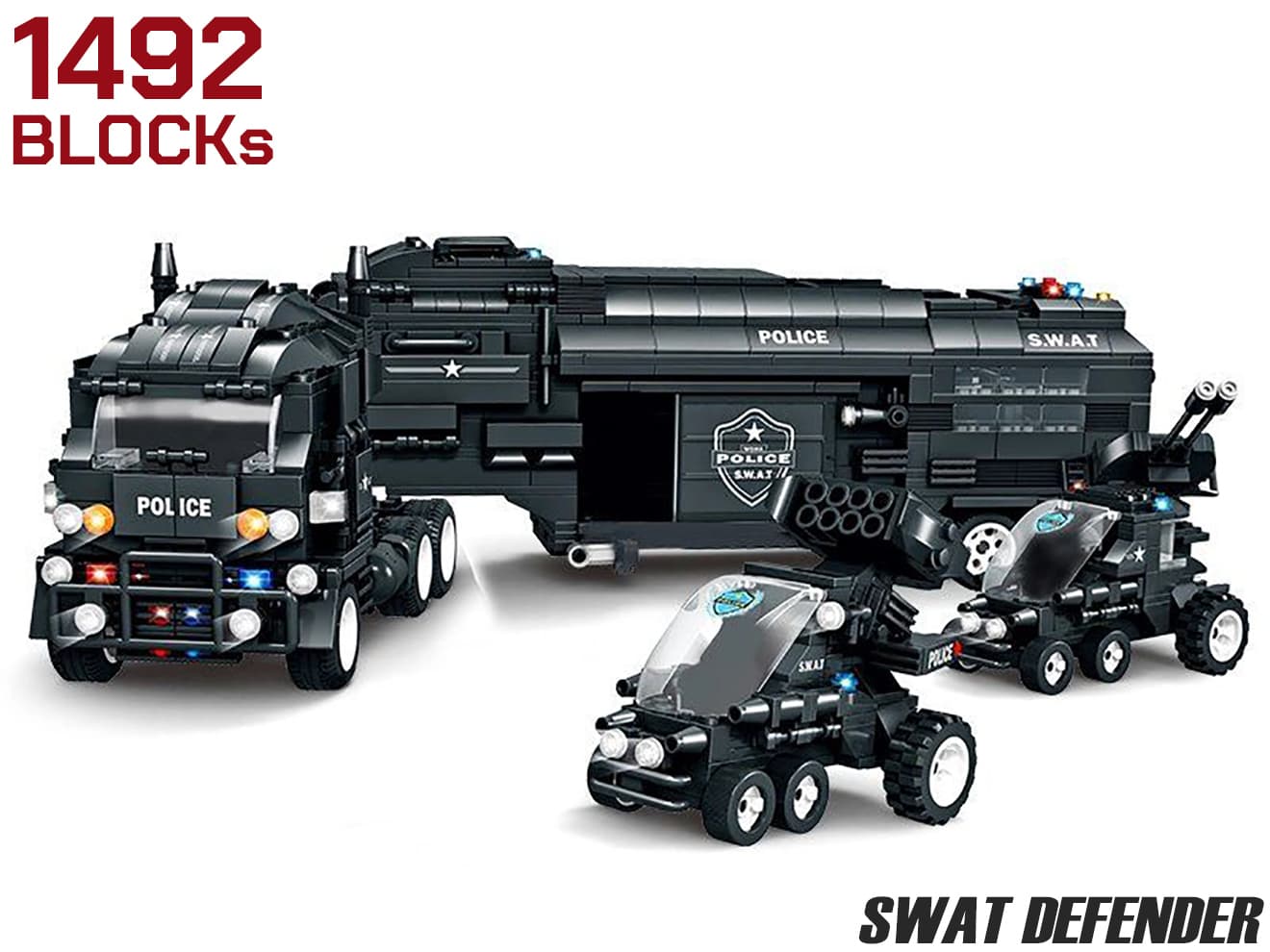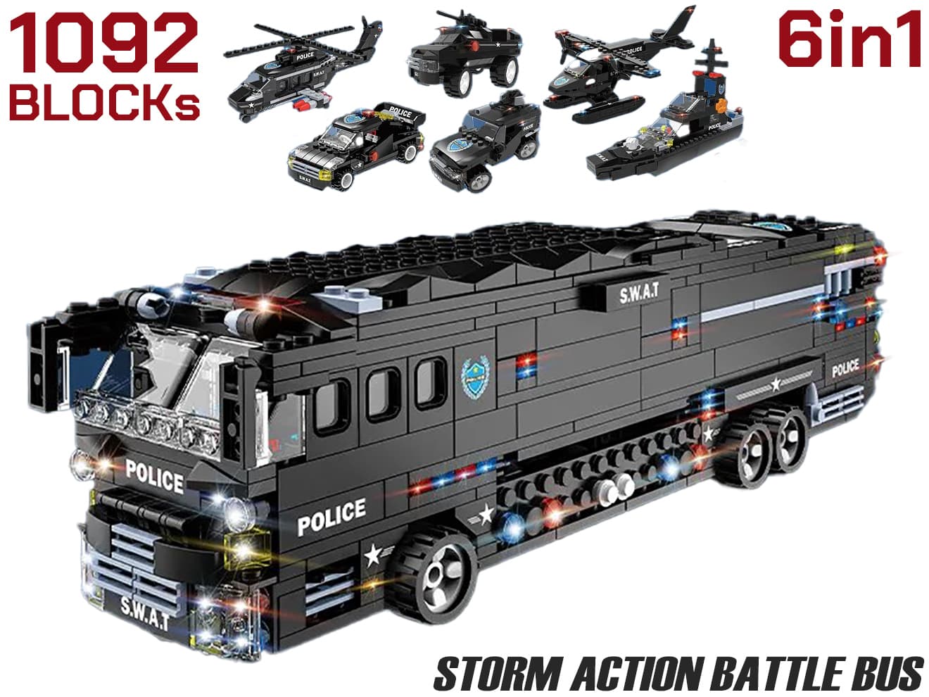 AFM SWAT シリーズ ストームアクションバトルバス 1092Blocks◆合体 特殊部隊 スワット ブロック 特殊車両 模型 警察 人員輸送車両 装甲車 大型バス モデル