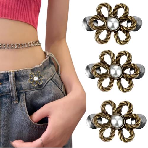 [YFFSFDC] ウエスト調整ボタン花の形3セット リベット付き 縫い目ない 調節 縮めるアジャスタブル リムーバブルウエストバックルジーンズ/ズボン/スカート/Tシャツ/パーカーなどを調節する取り外し可能 (ブロンズ色)