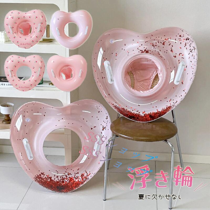 【夏バーゲン】キッズ フロート【足穴うきわ】ハート フロート 取っ手付き ハート浮き輪 ビッグサイズ ピンク/透明/スパンコール キラキラ うきわ スイムリング アウトドア ビーチグッズ リゾート プール 海 ビーチ 海水浴 水遊び 人気 インスタ映え 大きい 子供用 2025