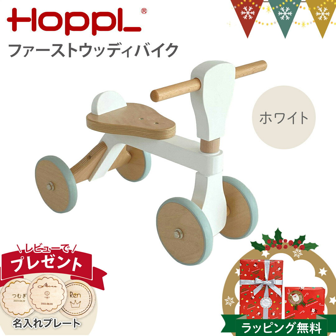 \レビュー特典!/ホップル(HOPPL)ファーストウッディバイク ホワイト|名入れファーストウッディバイク 1歳誕生日 知育玩具 一歳 2歳 3歳 木のおもちゃ おしゃれ かわいい 男の子 女の子 FIRST WOODY BIKE 子供