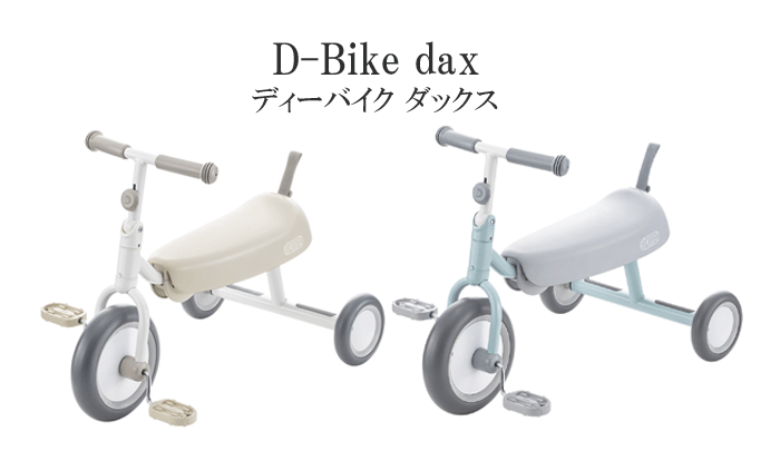 ~おうちでできたら、お外へぼうけん! 子どもの世界が広がる三輪車『ディーバイクダックス』~ 【はじめての乗り物遊びに最適】 ●お家の中でも遊べるコンパクトサイズ。 床をキズつけない発砲タイヤ(振動吸収タイヤ)を使用しているので、いきなりお外デビューが怖い子どもでも、まずは、お家の中から安心して三輪車デビューができます。 【子どもの成長に合わせてながーーく遊べる】 ●ステップアップする遊び体験 ⇒お家ではじめての乗り物遊び/1.5才~ ⇒足けり遊びでお外デビュー/2才~ ⇒ペダリング遊び/3才~ ●成長に合わせて座る位置を変えられるサドルシート ⇒小さい時はサドルの前、大きくなったらサドルの後ろに座ることで、こぎやすい位置を自分で探せます。 【折りたたみできてコンパクト】 ⇒しっぽを引いて、パタンと簡単に折りたたみ!玄関などの省スペースでもスッキリ収納できます。 【持ち運びに便利】 ⇒自転車のカゴや車のドランクにすっぽり入って移動もラクラク ⇒コンパクトで軽いから、女性でも片手で持ちやすい □ 仕様□ 対象年齢:1.5才~4才11ヶ月頃まで 製品寸法:使用時:W420×L650×H490mm 折畳時:W420×L320×H490mm 製品重量:3.8kg 乗車体重:20kgまで 身長目安:80~105cm (注文の際にラッピングボタンがございますが、包装いたしかねます。包装を選択されました場合は、ご注文後、包装代を訂正させていただき、ご連絡させていただきます。) ※北海道・沖縄へのお届けは別料金がかかります。 ※※※【必ずお読みください!】※※※※※※※※※※※※※※※※ こちらの商品は、≪大型商品≫のため、当店では、特にご指定がない場合は 商品箱へ直接送り状をお貼りする発送となりますのでご協力、 ご理解よろしくお願いいたします。 プレゼント、御祝などの際に手軽にお気持ちを伝える熨斗を 無料にてご準備させていただきます。 ご希望の場合はラッピングボタン、もしくは、備考欄にてご指示ください。 お名前をご希望の場合は、必ず、お名前をお書き添え下さいませ。 例 (御出産御祝/加藤) (御誕生日御祝/加藤) ※※※※※※※※※※※※※※※※※※※※※※※※※※※※※※