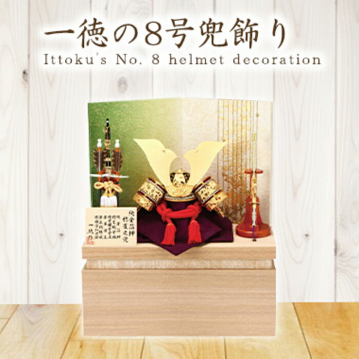 \BLACK FRIDAY P10倍/ 兜飾り兜 一徳 8号 純金箔押兜 緑屏風収納飾り 純金小札 正絹縅 コンパクト おしゃれ 飾り幅38cm モダン 小さい リビング マンション 五月人形 お祝い 端午の節句 男の子 かぶと