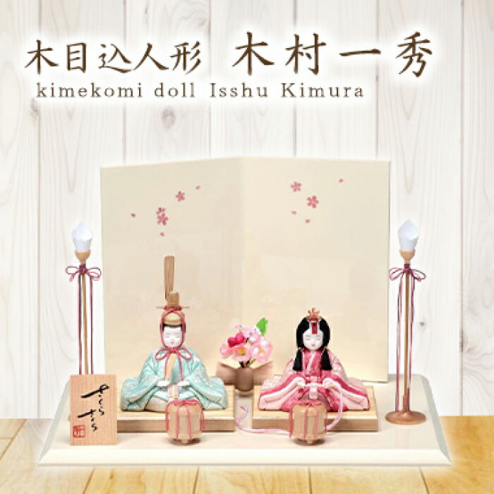 \BLACK FRIDAY P10倍/ 一秀 雛人形 ひな人形 木目込み 親王飾り C-106 “さくらさくら” 横幅約35cm コンパクト 和モダン 初節句 桃の節句 お雛様 ひな祭り 正絹金襴 レビューで名入れ札付き おしゃれでコンパクト 可愛い リビング 玄関 豪華