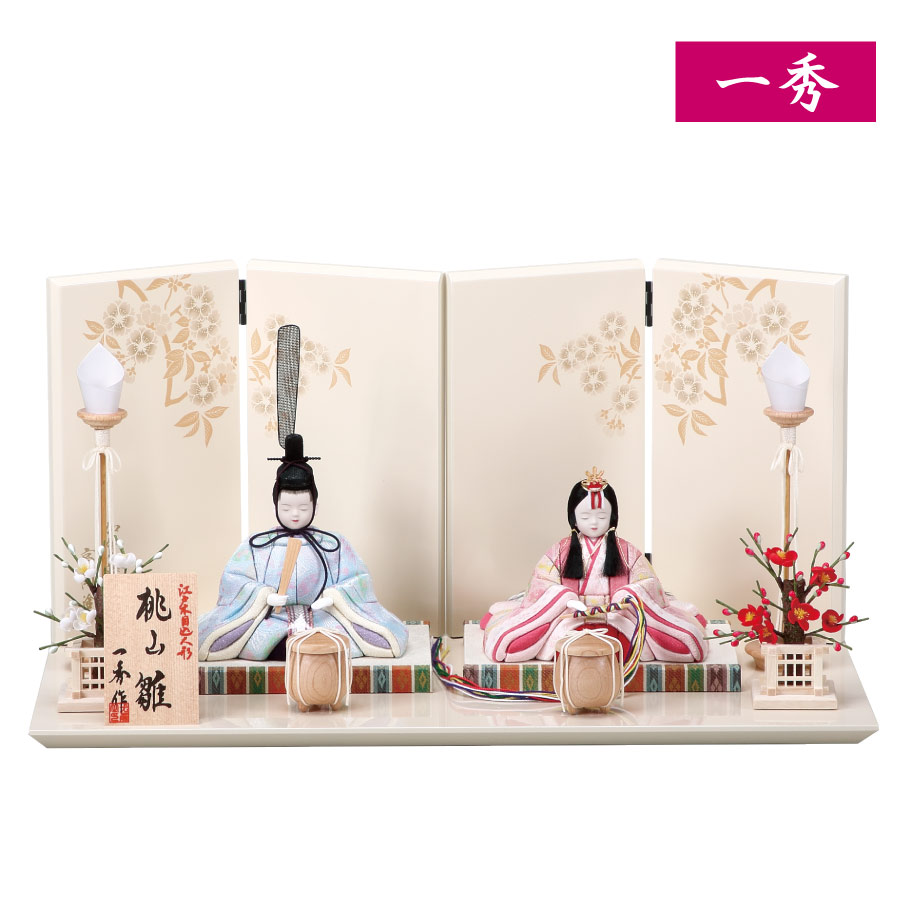 \BLACK FRIDAY P10倍/ 木目込み雛人形 一秀 親王飾り 桃山雛 16号(C-114) コンパクト ひな人形 お雛様 雛飾り 木目込み人形 木目込み 雛人形 幼い顔 木製 おしゃれ 木目込人形 可愛い 飾り幅50cm 豪華 モダン かわいい 木目込 リビング 初節句