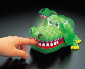 どの歯を押すとかみつくの!?【ちっちゃくたってイタイワニー グリーン】CCP どの歯を押すとかみつくの!? ワニの上あごを上にロックするまで開きます。 プレイの順番を決めて1回1本ずつ好きな歯をおしていきます。 かまれたプレイヤーが負けになります。 ※上あごを開くたびにかまれる歯が変わります。 プレイ人数:1人〜数人用 電池:不要 対象年齢:3歳以上