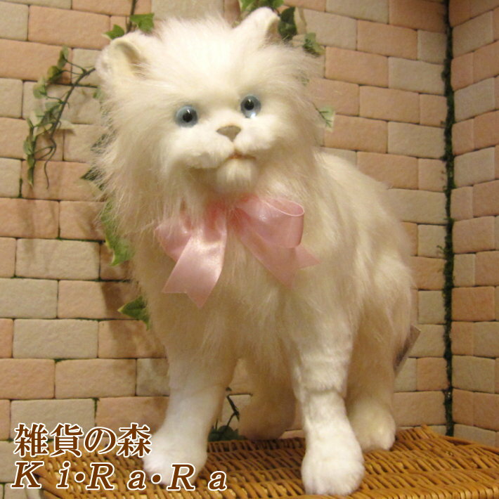 猫 置物 リアルな猫のぬいぐるみ ホワイト キャット 動物 アニマル オブジェ 雑貨 フィギュア モチーフ インテリア 玄関 癒し モフモフ もふもふ