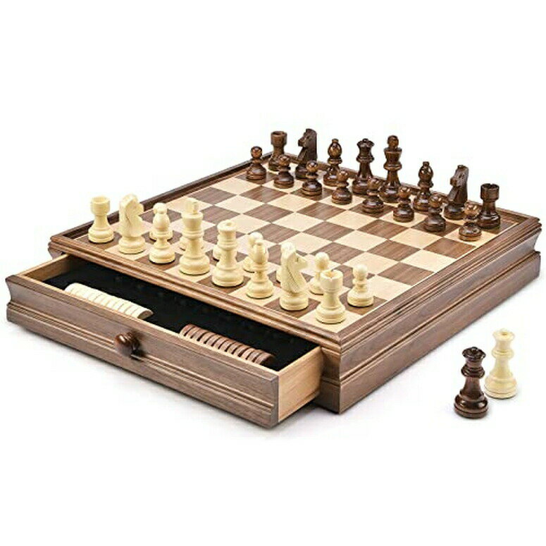 チェスセット Premium Natural Walnut 13" x 13" Magnetic Wooden Chess Set with 1 Built-in Storage Drawers - 2 Bonus Extra Queens - 24 Checkers Pieces - Staunton Chess Pieces, Board Games Chess Sets 【並行輸入品】