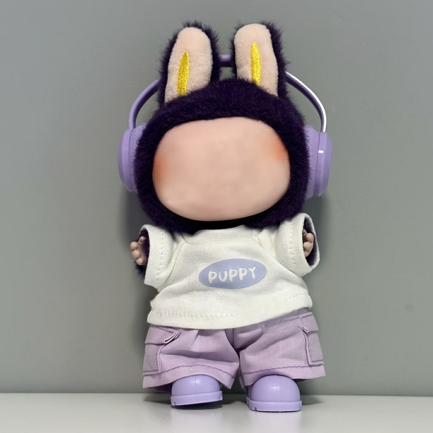 人形用服装セット ソフトパステルパープル ハート&子犬柄 16cm対応 軽量で着せ替え簡単 多機能4点セット(服・パンツ・ヘッドホン付き) レディース人形アクセサリー おしゃれ かわいい 送料無料