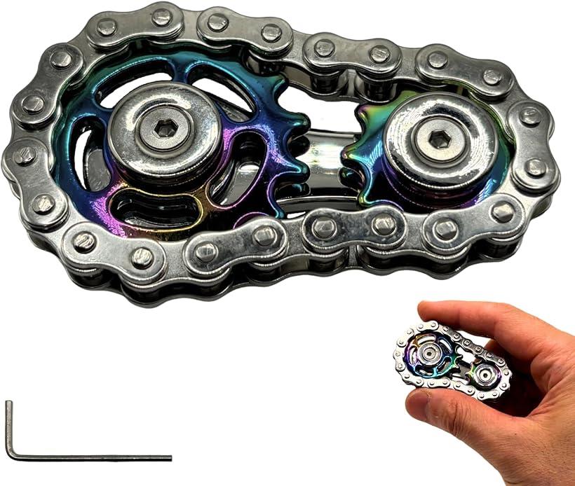 フィジェットトイ チェーン ギア EDC玩具 大人用 ボーイフレンドや父へのギフト レインボー (レインボー)
