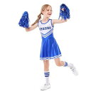 [LOLANTA]キッズダンス衣装チアガール女の子ヒップホップ子供服ガールズワンピースポンポン靴下3点セットブルー160