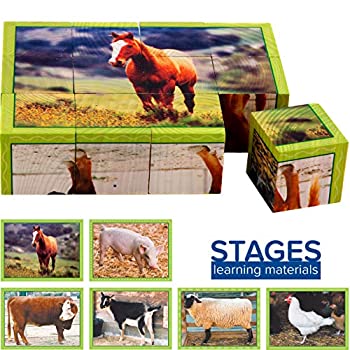 【中古】【輸入品・未使用】Stages Learning 木製 農場 動物 キューブ パズル 就学前言語ビルダー用 (SLM408)