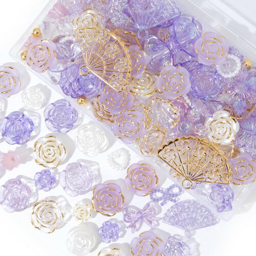 デコパーツ ビーズ ホイップデコ パーツ 特典ビーズ含む・26セット展開・約110個 アクリル セット トレカ 硬質ケース デコ 手芸 ハンドメイド デコ 素材 可愛い デコレーション セット アクセサリー 薔薇 パール 貝殻 リボン 蝶 クリア デコトレカケース ロココ調 (Mナイトブ