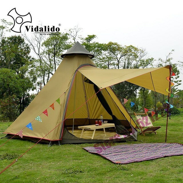 ピラミッドテント3-4人 アルミニウム棒 防水 家族 ガゼボ シェルター パーティー ビーチ 日除 屋外キャンプ ベージュ