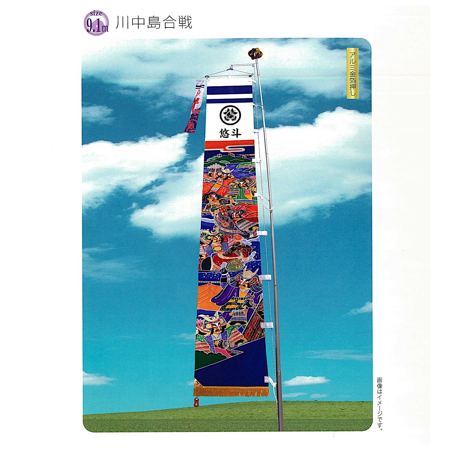[武者絵のぼり 名前・家紋入可] 9.1m [アルミ金箔押し] 武者絵幟 [庭用 ポール別売] [五月人形 5月人形 端午の節句 初節句]