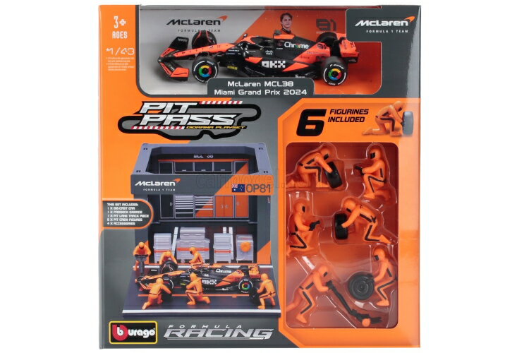 ブラーゴ 1/43 マクラーレン F1 MCL38 ジオラマ ガレージ ピットストップ チーム マクラーレン #81 2024 オスカー ピアストリ フィギュア&アクセサリー付きBURAGO 1:43 McLAREN F1 MCL38 DIORAMA GARAGE PIT-STOP N81 2024 O.PIASTRI WITH FIGURE AND ACCESSORIES