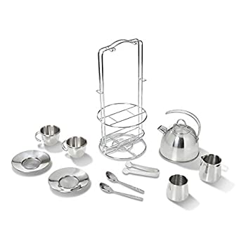 【中古】【非常に良い】Melissa & Doug Stainless Steel Tea Set & Storage Stand Toy