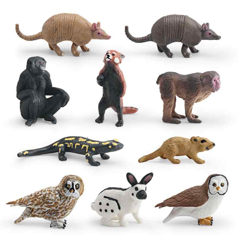 知育玩具 リアル 精巧 ミニチュア 動物フィギュア キッズ 子供向け 学習 認識 観察力 想像力 育成 PVC製 ウサギ ネズミ マカク レッサーパンダ アルマジロ フクロウ 模型 置物 オブジェ コレクション