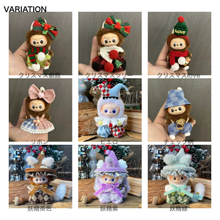クリスマス ラブブミニ用 9種類選択可能 labubu4.0用服のみ キーホルダー ぬいぐるみ 服 ぬい服 pin for love 適用 着せ替え コスチューム イニシャル