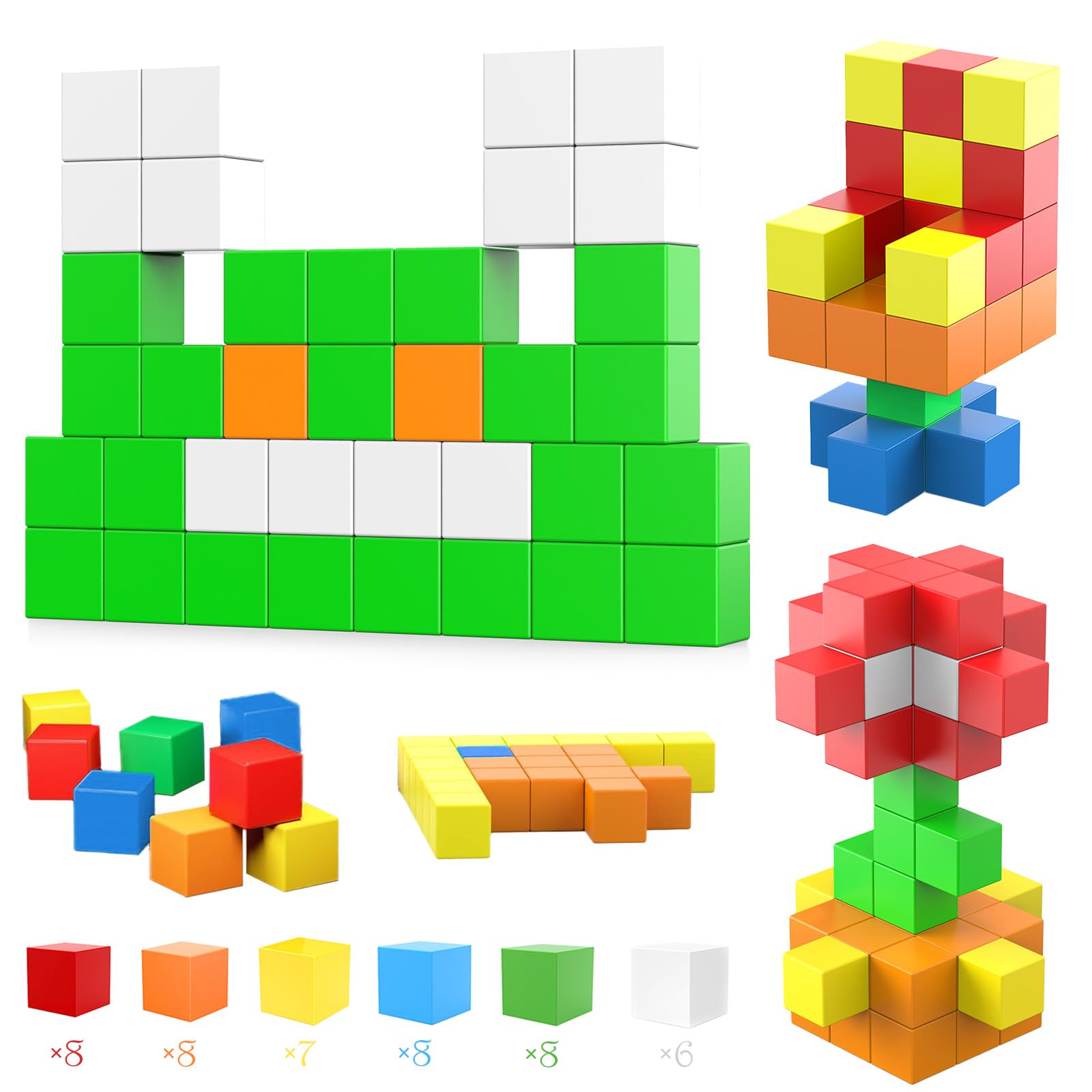 マグネットキューブ マグネット 磁気おもちゃ 45 個 30mm 立体パズル ブロック 初期教育 図形 算数 忍耐力 集中力 思考力 空間認識 脳トレ 頭脳パズル diy 積み木 建築セット 学校 & 幼稚園用 子供 男の子 女の子 幼児 誕生日 ギフト クリスマス プレゼント 贈り物 (45 個)
