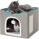 【送料無料】Aikenn 猫ハウス おもちゃ付き 猫の遊び場 ネコの遊園地 ペットベッド 爪研ぎ 滑り止め かわいい 快適 子猫 中型猫 通年 ペット用品 折り畳み可 洗える 二層 つめとぎ 家具破壊防止 爪とぎ 組み立て式 ストレス解消 (ダークグレー)