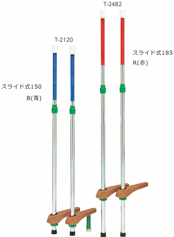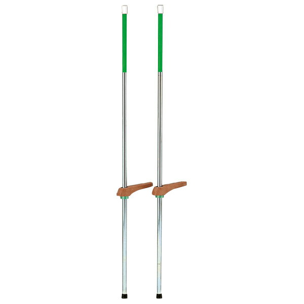 サイズ:長さ185cm 重量:2.3kg/組 適用身長:150cm以上 仕様:補助足は付属されておりません。足台は高さ調節自在の強化プラスチック採用、主材:スチールパイプ28mm、肉厚0.7mm、適正年齢4才以上、体重制限80kg、足台メモリ付運動バランス能力向上と共に足腰の鍛練、耐久力等の向上に適しています。非塩ビカラー竹馬