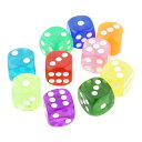 サイコロ 10個 セット 10色 カラフル さいころ ダイス 6面 アクリル 15mm クリア 立方体 ボードゲーム 双六 雑貨 おもちゃ