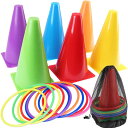ホップスコッチリングゲームは.ジャンプフープトレーニングコーンスポーツマーキングアジリティコーン柔軟で耐久性のある素材で作られています