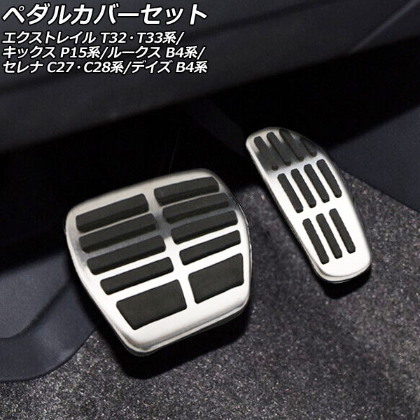 ペダルカバーセット ニッサン エクストレイル T32/NT32/HT32/HNT32/T33/SNT33 2013年12月〜 シルバー ステンレス製 AT車用 入数:1セット(2個)