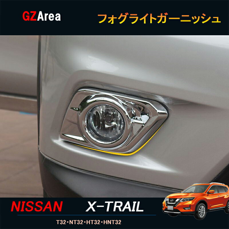 ニッサン 日産 エクストレイル T32 後期 クローム メッキ フォグランプ フォグライト フォグ フロントバンパー ランプ ライト カバー ガーニッシュ NT32 HT32 HNT32 20S 20X 20Xi ハイブリッド