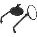 汎用バイクミラー 98mm 大視野ミラー 丸型ミラー CNCアルミ製 取り付けネジ10mm 8mm ハーレー用ステム付き 正ネジ 逆ネジアダプター 左右セット ブラック