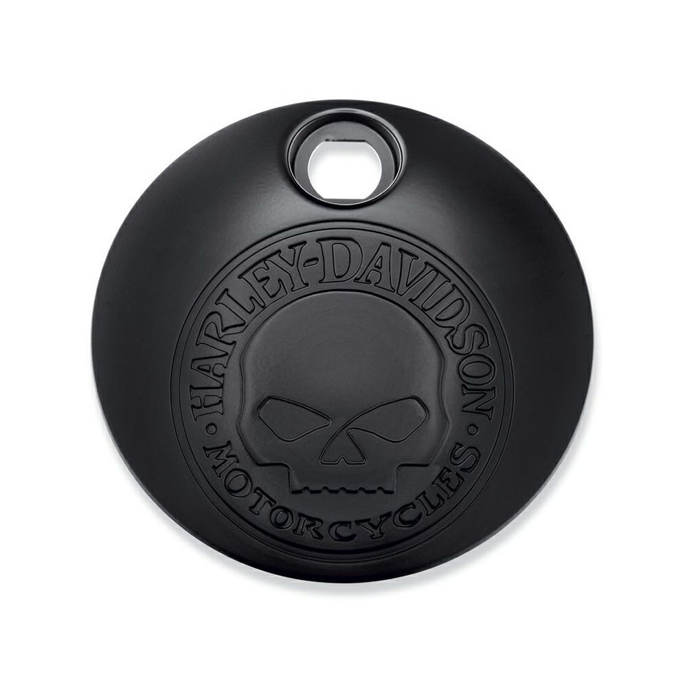 ウィリーG.が描いた有名なスカルをあしらったコレクションで、愛車をダークサイドにシフト。ブラックに染まり浮き彫りになったスカルと周囲を囲む「Harley-DavidsonMotorcycle」ロゴが威圧的な雰囲気を醸し出します。マットフィニッシュがグロスブラックやリンクルブラックによく似合います。標準装備のフュエルドアを簡単に取り換えられます。標準装備のマウンティングハードウェアとロックを再利用して取り付けます。’08以降エレクトラグライド、ストリートグライド、ウルトラリミテッド、ロードグライドおよびトライグライドモデルでセンターに給油口があるタンク装備車に適合。