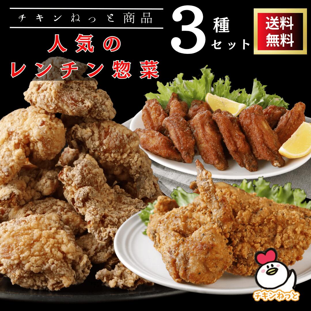 【送料無料】 鶏屋人気のレンチン惣菜3種セット 生姜香る鶏屋の唐揚げ やみつきチキン 骨付きフライドチキン(オリジナルスパイス) トライアル お試し 唐揚げ からあげ 国産 鶏肉 骨付き レンジ 手軽 トースター 簡単 便利 冷凍食品 父の日 母の日 プチギフト 人気 リピート