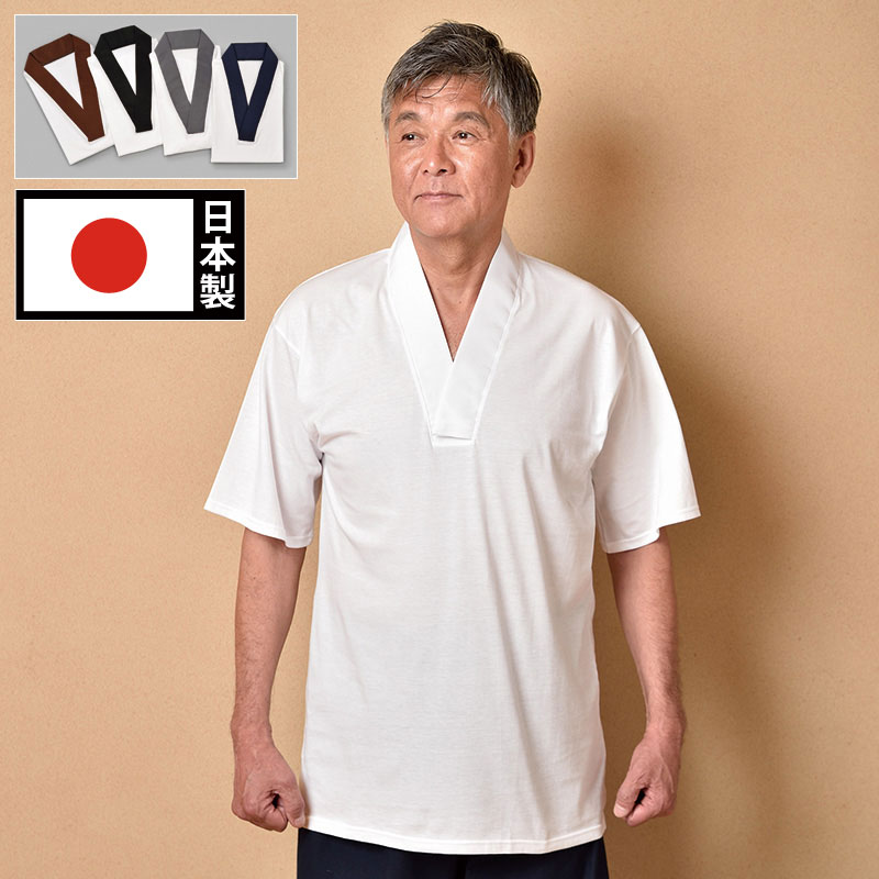 肌着 半襦袢 下着 襦袢 作務衣用 和装用 寺用 メンズ 男性用 紳士 大きいサイズ 春夏 春夏用 洗える 日本製 M Lサイズ [Tシャツ半襦袢 半袖(白・黒・紺・グレー・茶)(M-LL)] 敬老の日 父の日 ギフト プレゼント