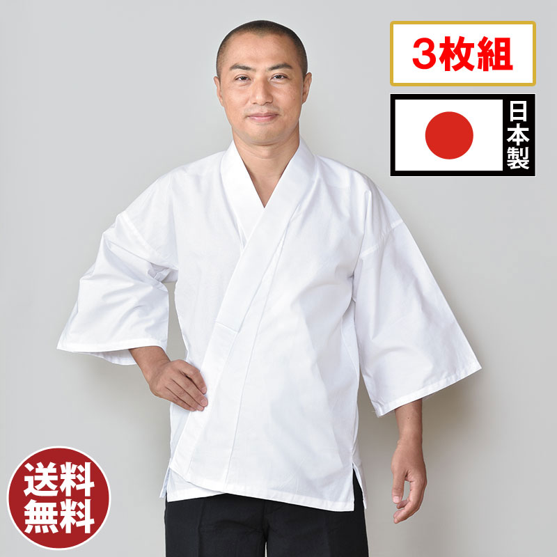 肌着 半襦袢 下着 襦袢 作務衣用 和装用 寺用 メンズ 男性用 紳士 大きいサイズ 春夏 春夏用 洗える 日本製 M Lサイズ [ブロード半襦袢(M-L) お得な3枚組] 敬老の日 父の日 ギフト プレゼント