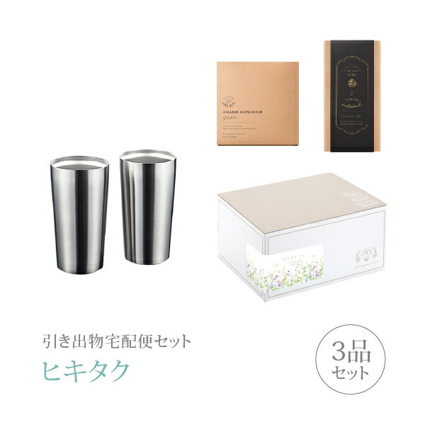 引き出物宅配便セット│引き出物セット 3品セット(ペアタンブラー 真空Wステンタンブラー(450ml)ペアセットコース)|引宅(ヒキタク)(引出物 引菓子 内祝 グルメ 手ぶら かつおぶし 結婚内祝い 結婚式 なびろめ ギフトセット)