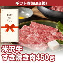 送料無料【メール便対応10個まで】【ギフト券】 米沢牛すき焼き肉450g mt-yosu100-gf 母の日 返礼品 御礼 御祝 贈答品 誕生日 父の日 お中元 お歳暮