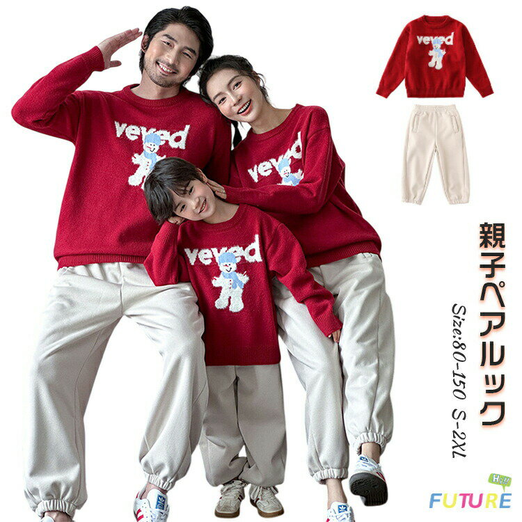 雪だるま セーター 親子ペア 赤 親子ペア トレーナー 長袖 かわいい リンクコーデ 親子 セット 秋 パンツ ベージュ 上下セット 春 親子ペア お揃い服 親子コーデ 男女 おそろい 子供 服 パパ ママ ゆったり プレゼント 家族 おそろい 大きいサイズ