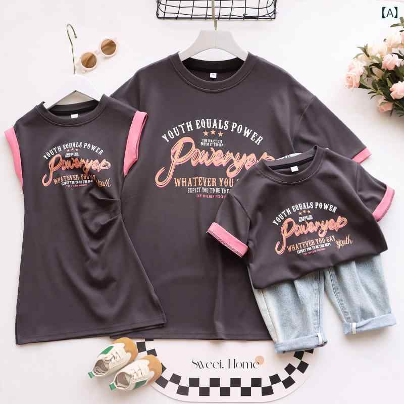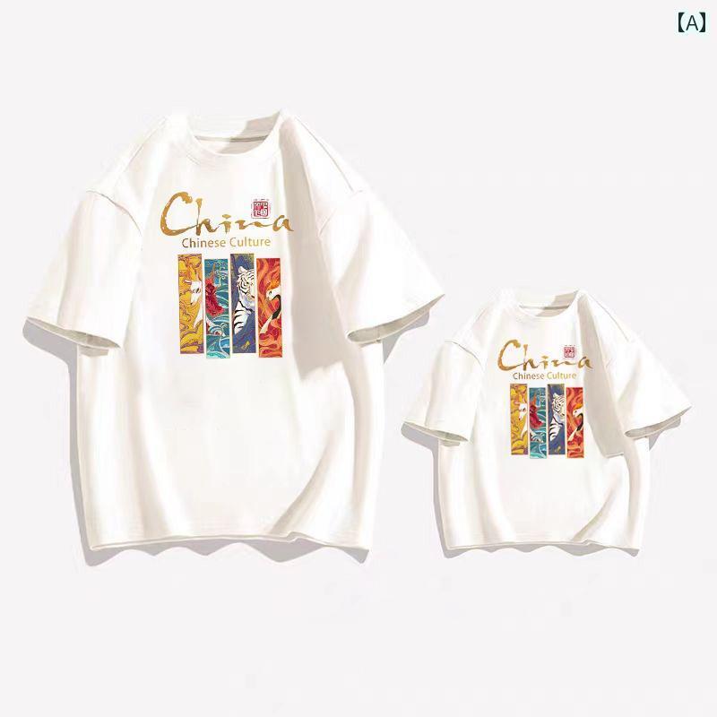 ペアルック 親子 カジュアル コーデ チャイナ 風の 親子 服 母 娘の 母子 Tシャツ 夏の 新型 3人 家族 4人 家族の 赤ちゃん ストリート 幼稚園 クラスの 制服