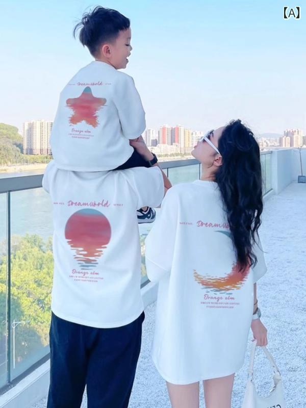お揃い ファッション コーデ ペアルック カジュアル 2025年の スーパー ホットな 親子 服 3人または 4人 家族向け 夏の 半袖 Tシャツ ドーパミン 子供服