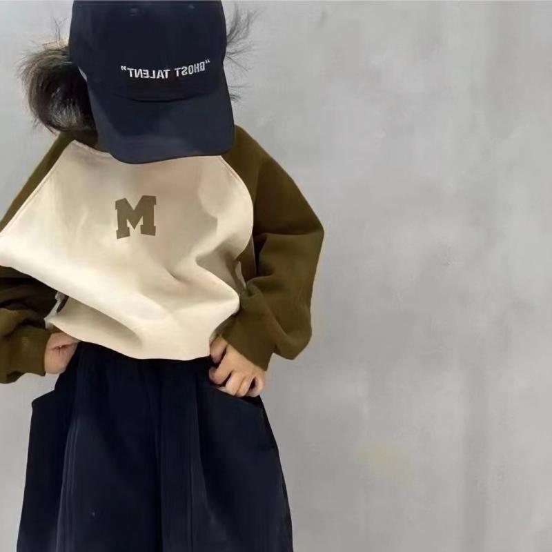 子供用トレーナー キッズ 男女兼用 トップス 長袖 切り替え プリント 春秋 冬服 中 крупный 子供 普段着 部屋着 藏青色 米白色