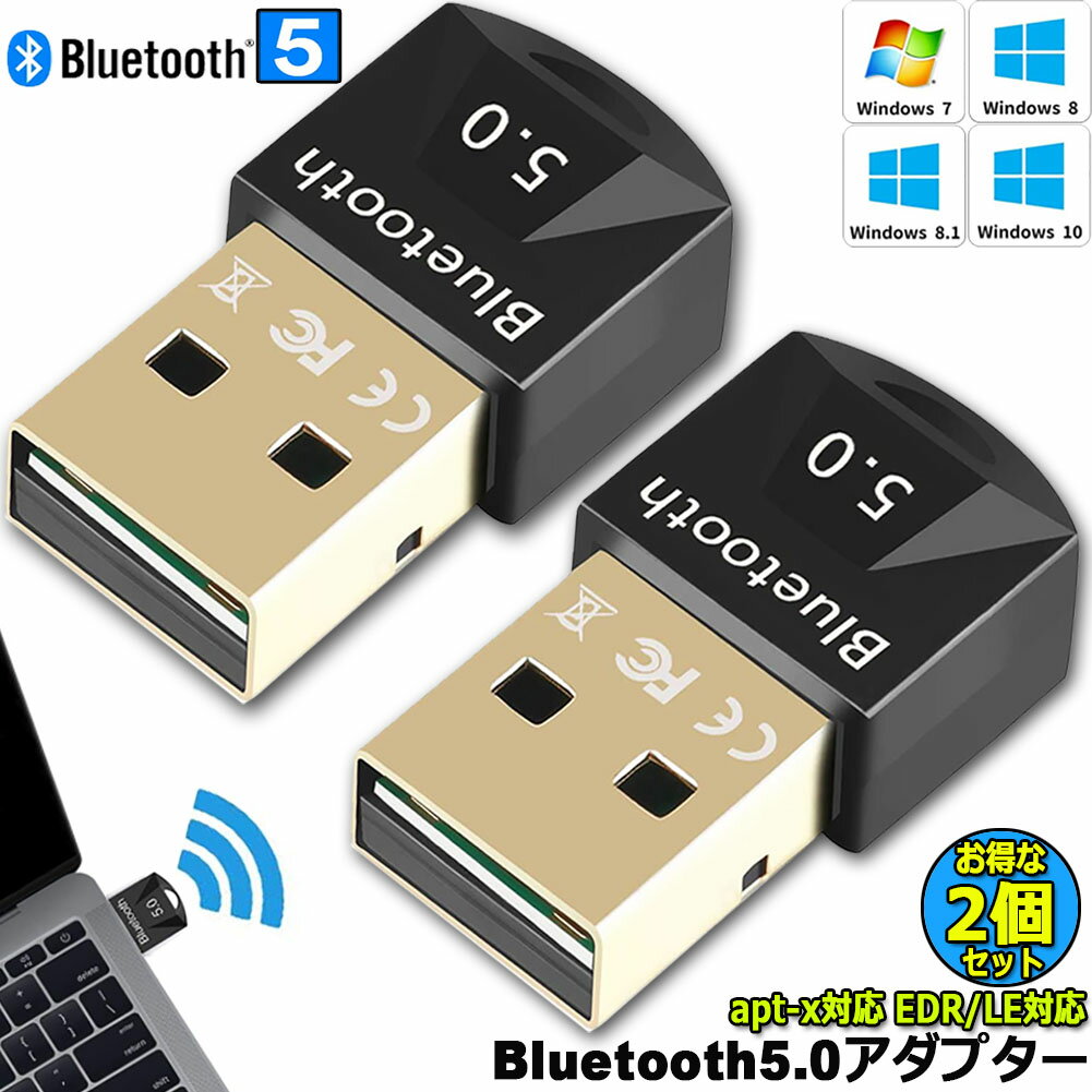 Bluetooth 5.0 USBアダプタ 2個セット PC用 ワイヤレス Ver5.0ドングルレシーバー ブルートゥース子機 Bluetooth USB アダプタ apt-X 対応 Class2 Bluetooth Dongle Ver5.0 apt-x EDR/LE対応(省電力) Bluetoothアダプター Windows 7/8/8.1/10(32/64bit) Mac非対応