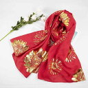 ショール レディース 女性用 民族風 薄手 箔押し 赤 レッド 綿麻 コットンリネン ストール マフラー スカーフ オールシーズン 春夏秋冬 冷房対策 日焼け対策 ファッション小物 旅行 通勤 オフィス カジュアルスタイル