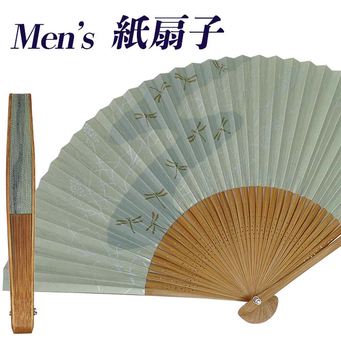 扇子 男性用 メンズ 紙扇子 紙製 35間 22.5cm 流水とんぼ 1211 おしゃれ シンプル 【メール便OK】 グリーン 通勤 通学 自分用 せんす 竹製骨 普段使い 父の日 プレゼント